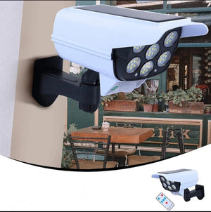 Sa 77 LED dioda i solarnim panelom, simulira pravi video nadzor. Indikatorska lampica daje dodatni vizuelni efekat, dok ugrađeni senzor pokreta osigurava trenutno osvetljenje na 5 metara udaljenosti